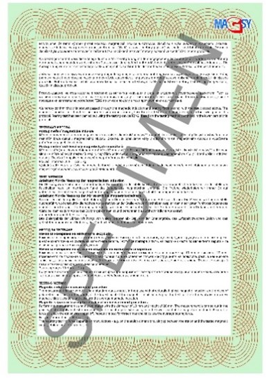 Ostateczna siła odrywania i indukcja magnetyczna zależą od wielu czynników – np. od wymiarów wzorca, szczeliny powietrznej między wzorcem a testowanym obwodem magnetycznym, grubości sondy pomiarowej, zanieczyszczeń powierzchni, wykończenia powierzchni wzorca itp. Podawane wartości siły odrywania i indukcji magnetycznej zostały zmierzone w idealnych warunkach określonych przez środowisko testowe. Wartości te mogą się zmieniać w zależności od konkretnego typu środowiska – np. warunki eksploatacyjne i późniejsze zużycie mogą wpłynąć na skuteczność produktu i wyniki pomiarów. Podawane wartości należy traktować jako orientacyjne, a wszelkie odchylenia nie mogą być uznawane za wadę.