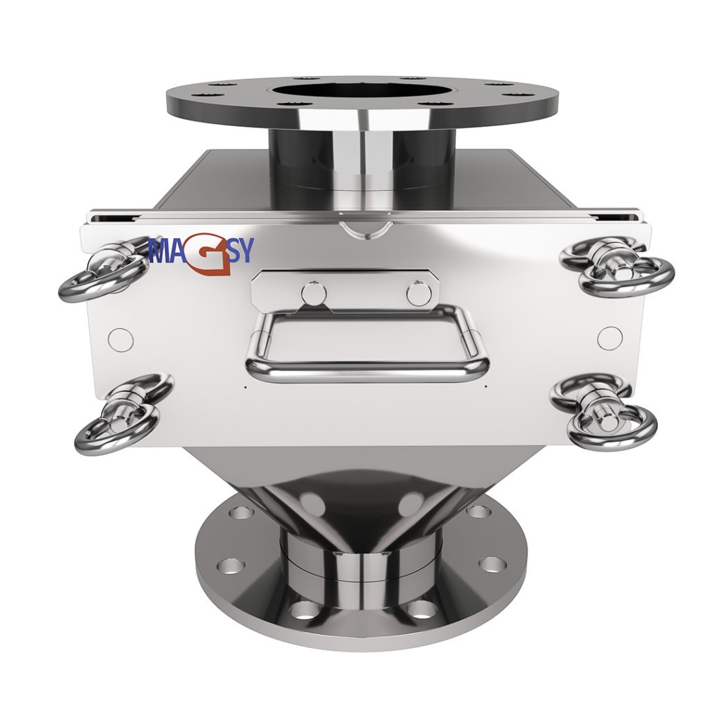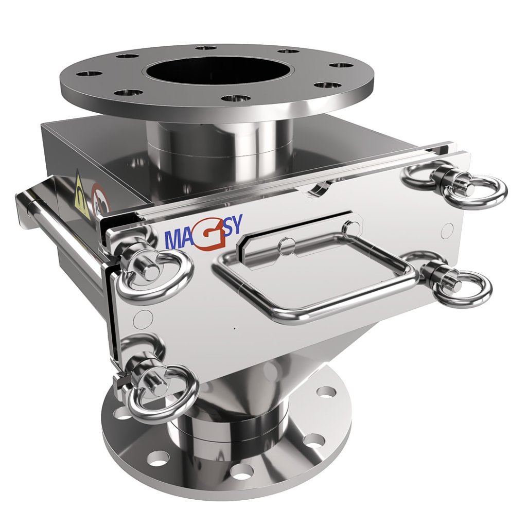 Separator magnetyczny nadaje się do zastosowania wyłącznie w instalacjach nieciągłych (w trakcie ręcznego czyszczenia separatora magnetycznego należy zatrzymać przepływ oczyszczanego materiału). Montaż możliwy jest wyłącznie w pionowych rurociągach (jeśli montaż pionowy nie jest możliwy, nie używaj tego produktu i skontaktuj się z nami w celu doboru innego separatora magnetycznego lub potwierdzenia zasadności użycia), np. w przemyśle spożywczym i chemicznym, w rolnictwie, w przemyśle przetwarzania odpadów oraz w produkcji materiałów budowlanych – patrz wykaz odpowiednich materiałów poniżej.