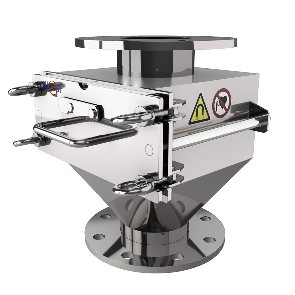 Separator magnetyczny, przeznaczony wyłącznie do zastosowań przemysłowych, zapewnia doskonałe oczyszczenie Twoich suchych mieszanek z zanieczyszczeń ferromagnetycznych (przez zanieczyszczenia ferromagnetyczne rozumiemy w pełni magnetyczne metale, takie jak żelazo, nikiel, kobalt oraz stopy zawierające żelazo – nie zaś paramagnetyczne, bardzo słabo magnetyczne materiały).