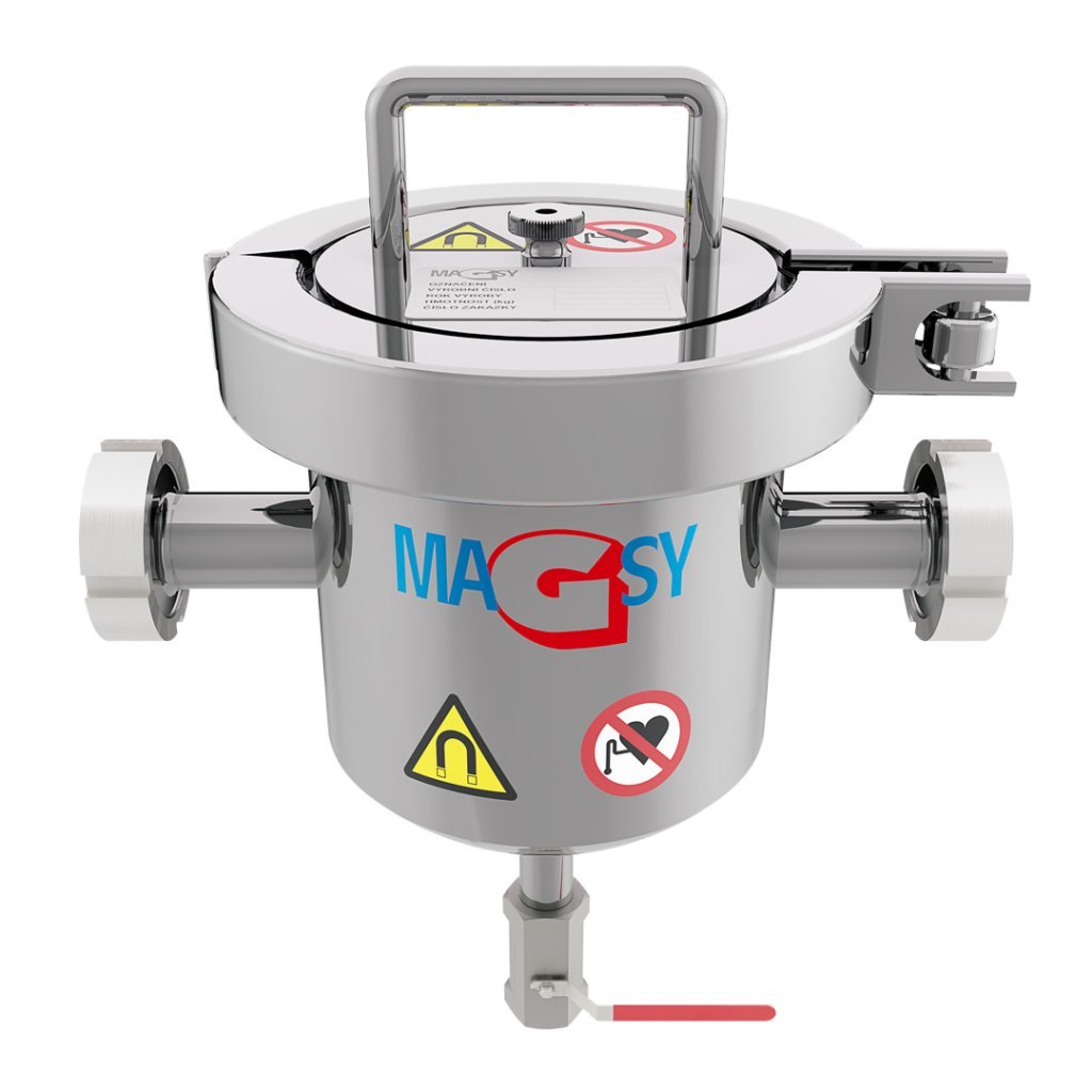 Separator magnetyczny, przeznaczony wyłącznie do zastosowań przemysłowych, zapewnia doskonałe oczyszczenie Twoich mieszanek ciekłych z zanieczyszczeń ferromagnetycznych (przez zanieczyszczenia ferromagnetyczne rozumiemy w pełni magnetyczne metale, takie jak żelazo, nikiel, kobalt oraz stopy zawierające żelazo – nie zaś paramagnetyczne, bardzo słabo magnetyczne materiały).