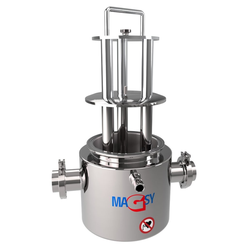Separator magnetyczny, przeznaczony wyłącznie do zastosowań przemysłowych, zapewnia doskonałe oczyszczenie Państwa ciekłych mieszanin z zanieczyszczeń ferromagnetycznych (przez zanieczyszczenia ferromagnetyczne rozumiemy w pełni magnetyczne metale, takie jak żelazo, nikiel, kobalt oraz stopy zawierające żelazo, a nie paramagnetyczne, bardzo słabo magnetyczne materiały).