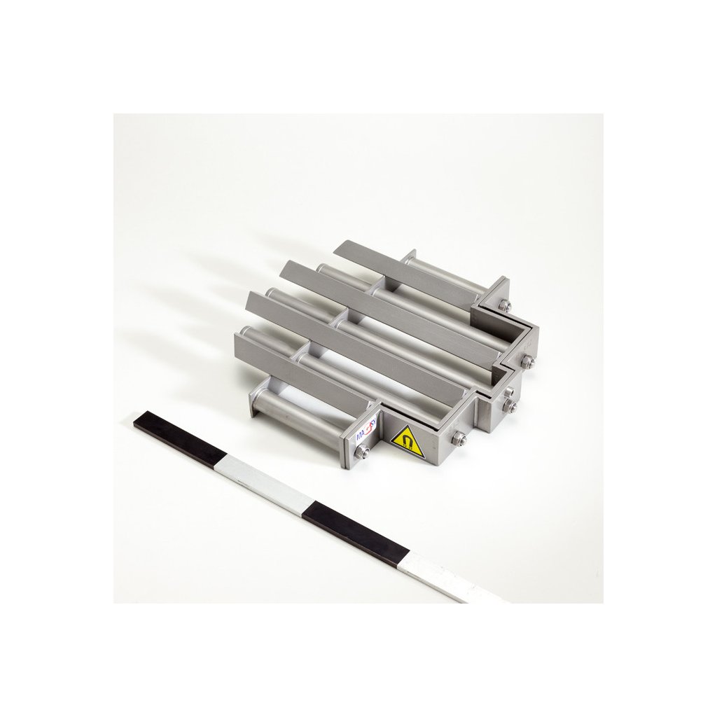 Magnes do leja wsypowego nie jest przeznaczony do separacji magnetycznej niemagnetycznych metali nieżelaznych ani do separacji magnetycznej części lub elementów zawierających metale ferromagnetyczne (np. części plastikowe z prasowanymi częściami metalowymi, zgniecione ramy okienne z metalowymi listwami, drewniane granulki z prasowanymi cienkimi drutami...). W przypadku konieczności oddzielenia takich zanieczyszczeń ferromagnetycznych, nie należy używać tego typu magnesu do leja wsypowego i należy skontaktować się z naszymi ekspertami ds. separacji magnetycznej, którzy doradzą, jakiego innego separatora magnetycznego należy użyć lub jaki typ należy dodać do zestawu separacyjnego.
