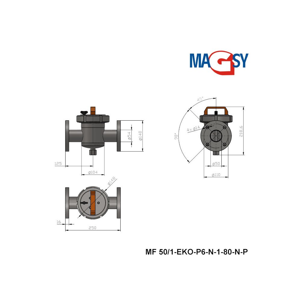 | Podłączenie do rurociągu: | 2x płaski kołnierz spawalniczy, ČSN EN 1092-1 typ 01 DN 50 PN6, materiał: 1.4301 |